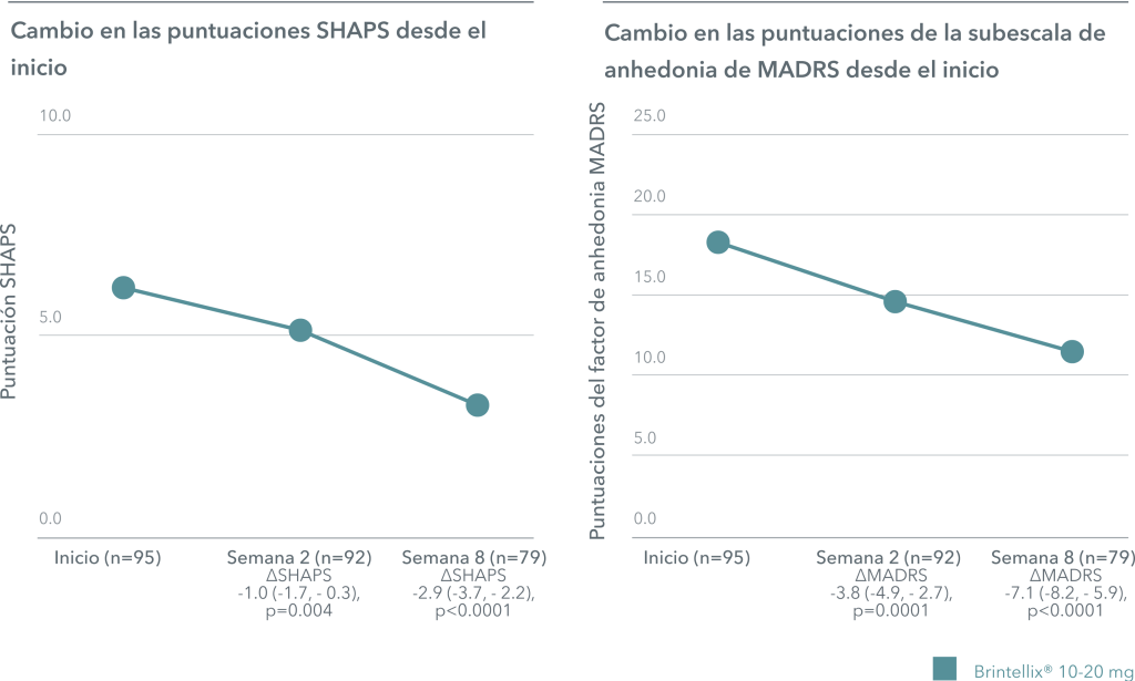 †Medido por las mejoras en la puntuación de la subescala de anhedonia SHAPS y MADRS.1