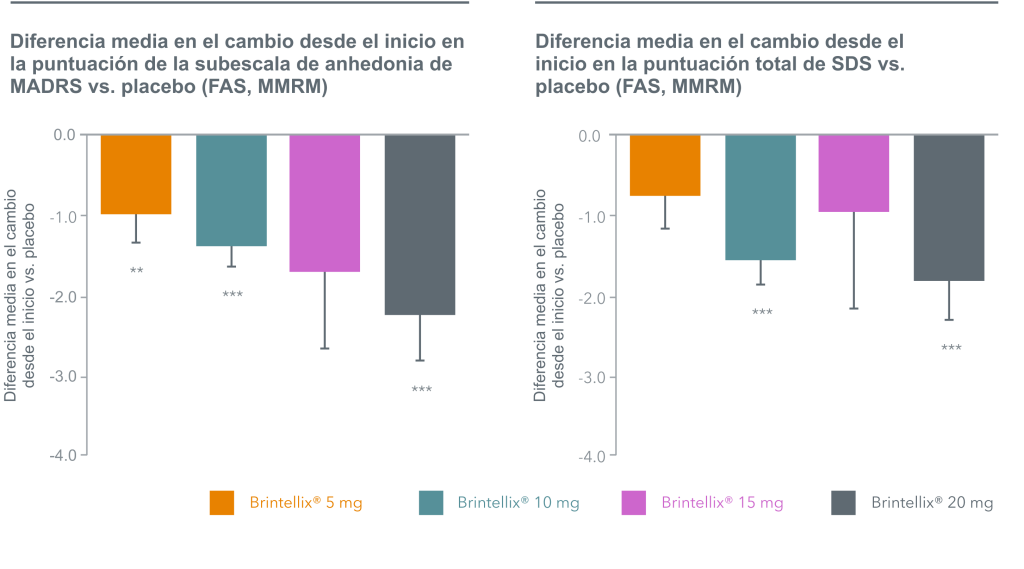 †Según lo medido por la puntuación de la subescala de anhedonia de 5 ítems de MADRS.