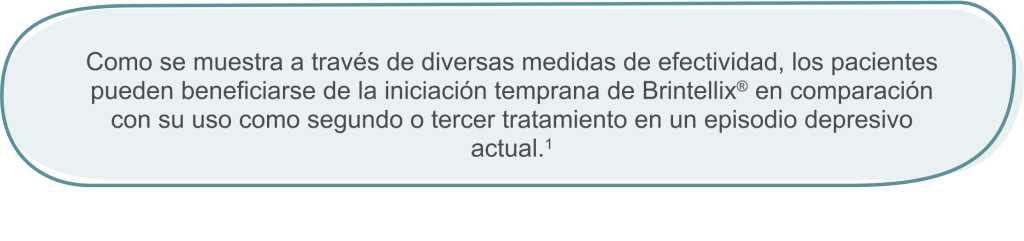 El estudio sobre la Efectividad en la Vida Real de Vortioxetina en la Depresión (RELIEVE) tuvo como objetivo demostrar la eficacia y seguridad de Brintellix® (vortioxetina) para el tratamiento del trastorno depresivo mayor (TDM) en la práctica clínica habitual. En todos los puntos finales de efectividad, las mejoras desde el inicio fueron en general numéricamente mayores en los pacientes que recibieron Brintellix® como tratamiento de primera línea.1